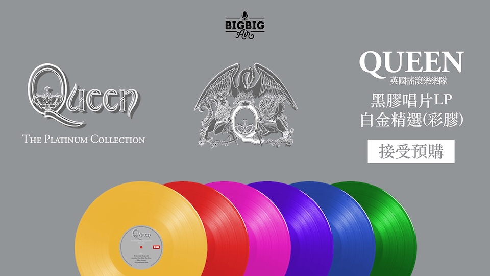 首次以黑膠唱片發行,Queen 的合輯『白金精選』收錄了他們所有三張精選專輯,展示了他們在排行榜榜首、屢獲殊榮、破紀錄的搖滾和流行經典歌曲方面無與倫比的記錄。樂隊中有四位詞曲作者 — Freddie Mercury、Brian May、Roger Taylor 和 John Deacon — Queen 創造了一個光榮的歷史歌曲遺產,至今仍流傳千古。對於過去和未來的粉絲來說,他們會震撼你! 限量版 6 LP 彩色黑膠套裝以帶有全新藝術品的包裝發布。每一片黑膠唱片都不同顏色,並有獨立設計的封套。該套裝還附帶一本獨家的 24 頁 12 英寸照片冊。 不受時間或時尚的影響,『白金精選』提醒人們 Queen 總是那麼多姿多彩,總是充滿活力,總是充滿激情和自豪。 售價: $899 曲目 -------- Greatest Hits - LP 1 - Side A 1. Bohemian Rhapsody 2. Another One Bites The Dust 3. Killer Queen 4. Fat Bottomed Girls Greatest Hits - LP 1 - Side B 1. Bicycle Race 2. You’re My Best Friend 3. Don’t Stop Me Now 4. Save Me Greatest Hits - LP 2 - Side A 1. Crazy Little Thing Called Love 2. Somebody To Love 3. Now I’m Here 4. Good Old Fashioned Lover Boy Greatest Hits - LP 2 - Side B 1. Play The Game 2. Flash 3. Seven Seas Of Rhye 4. We Will Rock You 5. We Are The Champions Greatest Hits II - LP 3 - Side A 1. A Kind Of Magic 2. Under Pressure (Queen + David Bowie) 3. Radio Ga Ga 4. I Want It All 5. I Want To Break Free Greatest Hits II - LP 3 - Side B 1. Innuendo 2. It's A Hard Life 3. Breakthru 4. Who Wants To Live Forever Greatest Hits II - LP 4 - Side A 1. Headlong 2. The Miracle 3. I'm Going Slightly Mad 4. The Invisible Man Greatest Hits II - LP 4 - Side B 1. Hammer To Fall 2. Friends Will Be Friends 3. The Show Must Go On 4. One Vision Greatest Hits III - LP 5 - Side A 1. Queen + Elton John - The Show Must Go On (Live, Theatre National de Chaillot, Paris, 1997) 2. Queen + David Bowie - Under Pressure (Rah Mix) 3. Freddie Mercury + Montserrat Caballé - Barcelona (Single Version) 4. Queen - Too Much Love Will Kill You Greatest Hits III - LP 5 - Side B 1. George Michael + Queen - Somebody To Love (Live, The Freddie Mercury Tribute Concert For AIDS 2Awareness, Wembley, April 1992) 3. Queen - You Don't Fool Me 4. Queen - Heaven For Everyone 5. Queen - Las Palabras De Amor (The Words Of Love) Greatest Hits III - LP 6 - Side A 1. Brian May - Driven By You 2. Freddie Mercury - Living On My Own 3. Queen - Let Me Live 4. Freddie Mercury - The Great Pretender 5. Queen - Princes Of The Universe Greatest Hits III - LP 6 - Side B 1. Queen + Wyclef Jean - Another One Bites The Dust (Remix) 2. Queen - No One But You (Only The Good Die Young) 3. Queen - These Are The Days Of Our Lives 4. Queen - Thank God It's Christmas <img src="https://bigbigair.kolorbox.com/media/bigbigair/2022/10/03/Queen_-_The_Platinum_Collection_-_3D_Product_Shot.png" class="full-width">